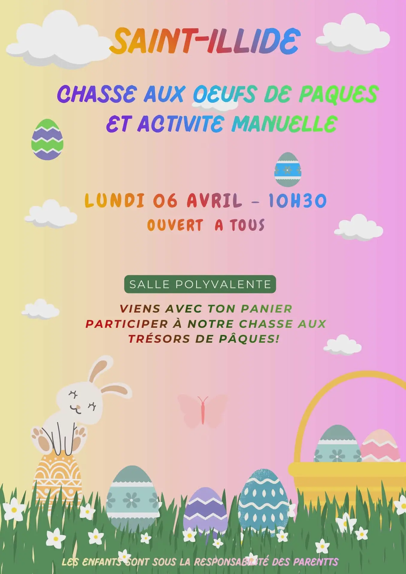 Activités manuelles et chasse aux œufs Enfants sous la responsabilité des parents. Viens avec ton panier !