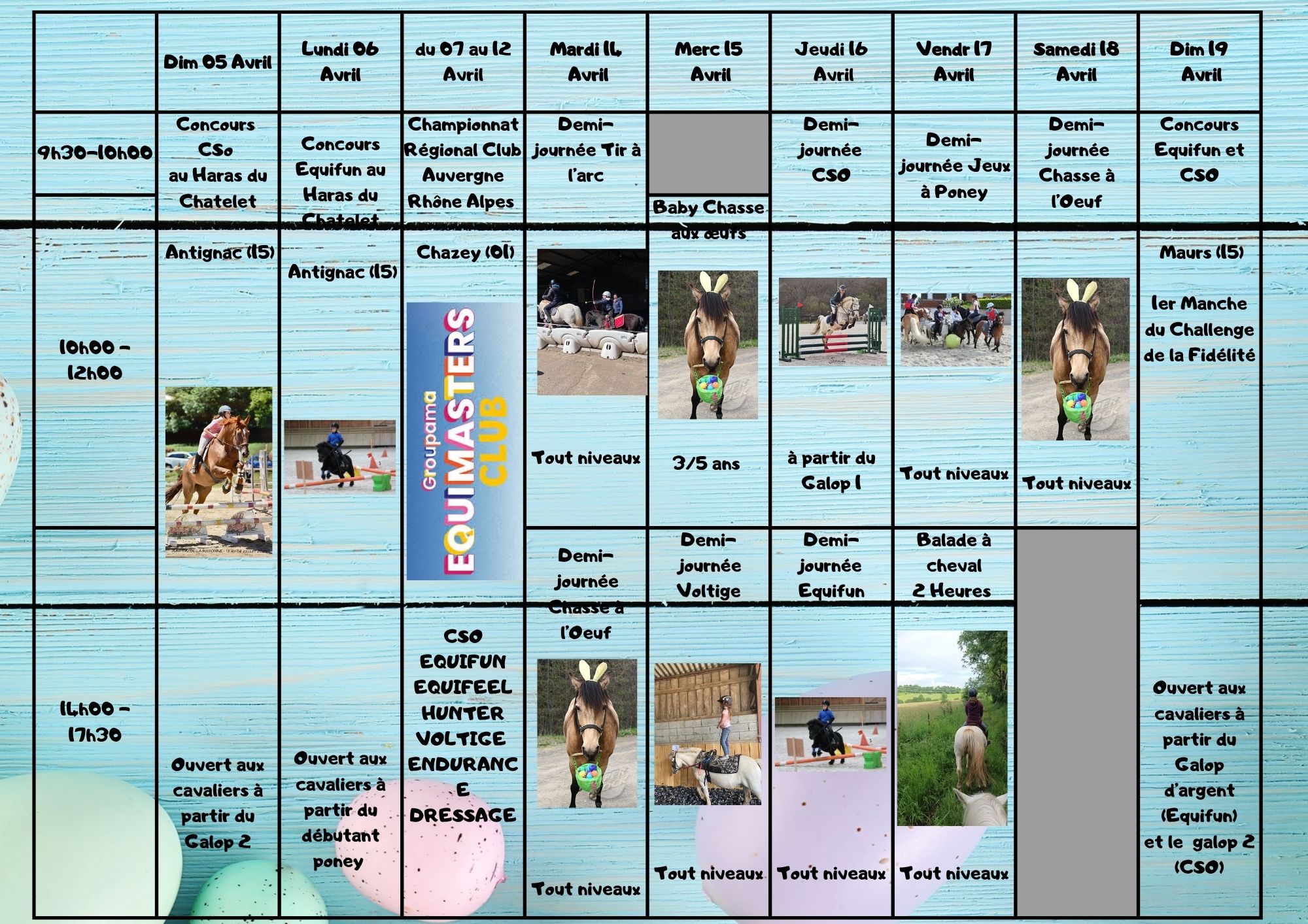 Avec Poney and Co, il y en a pour tous les goûts et pour tous les âges : chasse à l'œuf, galops, equifun, voltige, tir à l'arc, jeux, CSO...