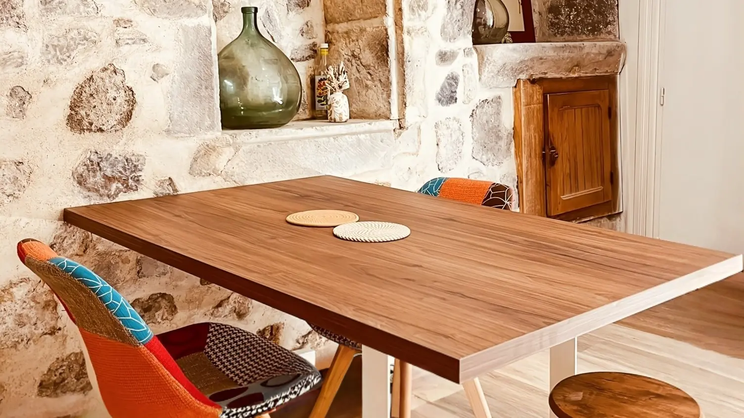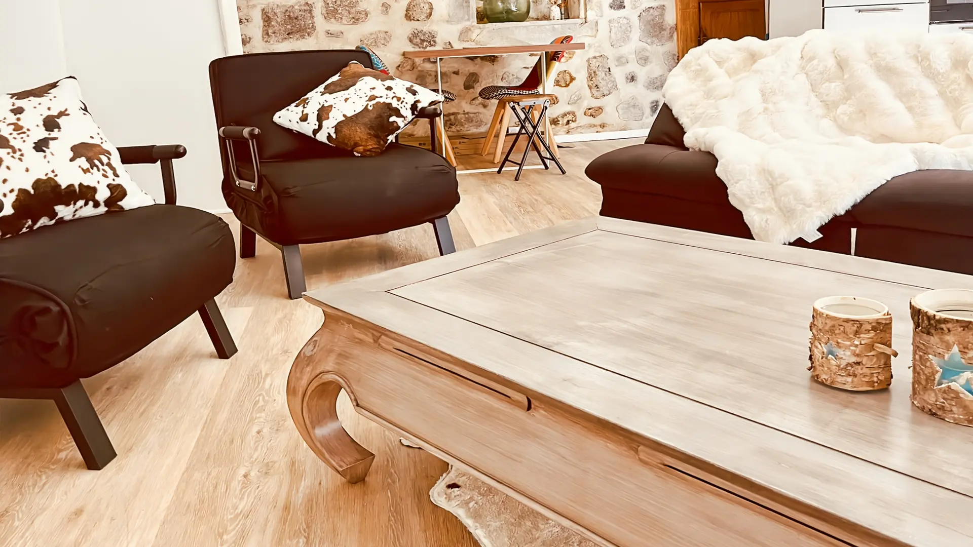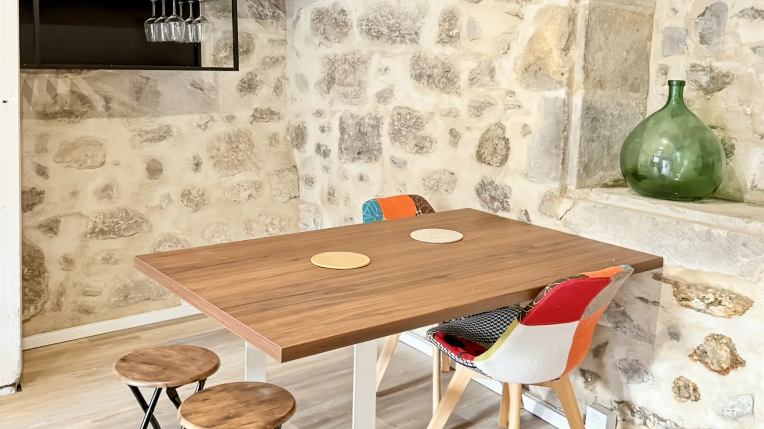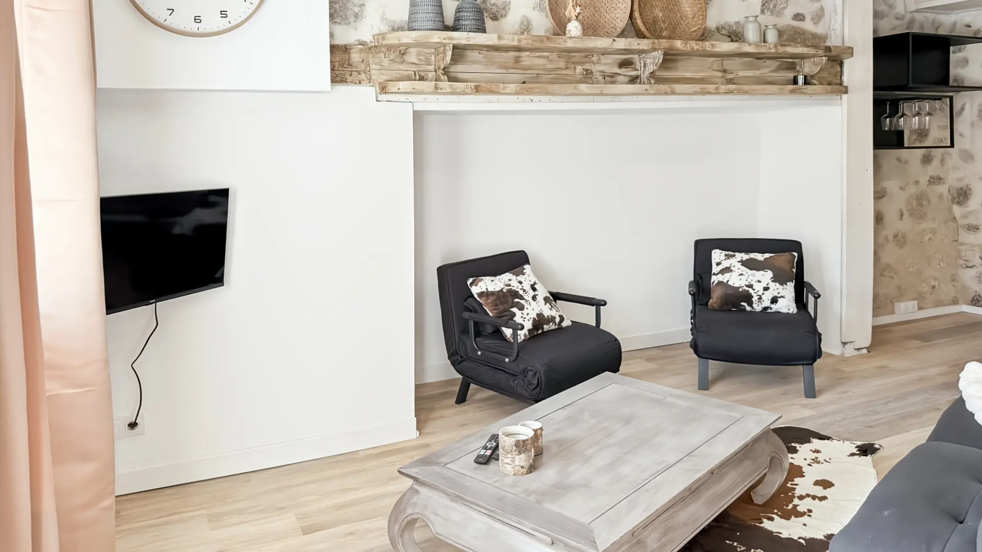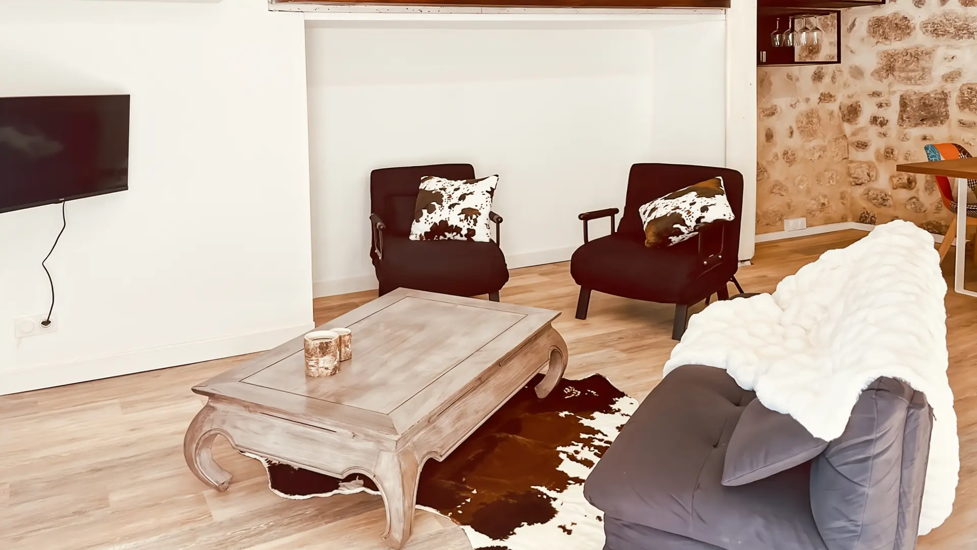 Au 1er étage, vous avez le salon, avec la télévision, et le Wifi.