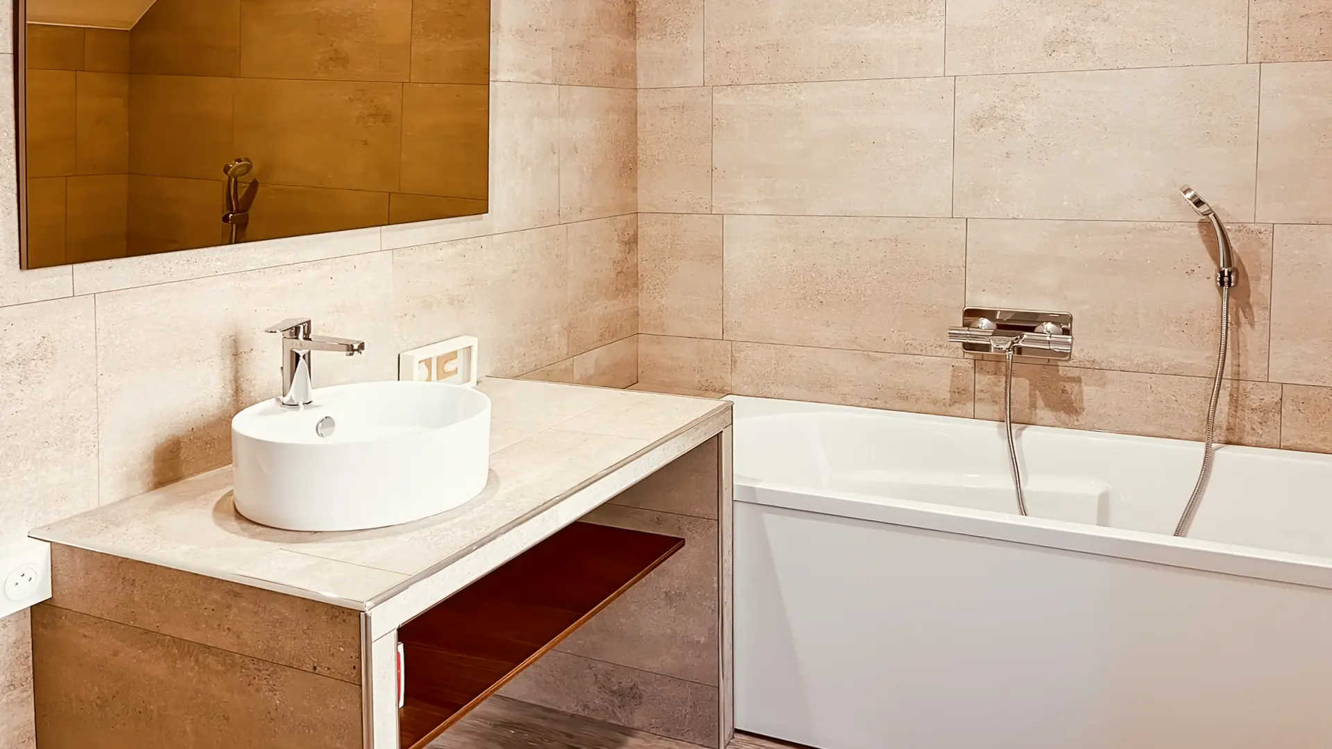 La salle de bain se compose d'une vasque avec une baignoire.