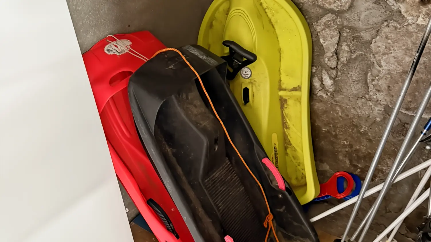 Au rez de chaussés, vous avez un garage (pas de possibilité de mettre une voiture), vous avez la place pour y laisser vos ski, ... Vous avez à votre disposition des raquettes, des skis (sans chaussures), et des luges.